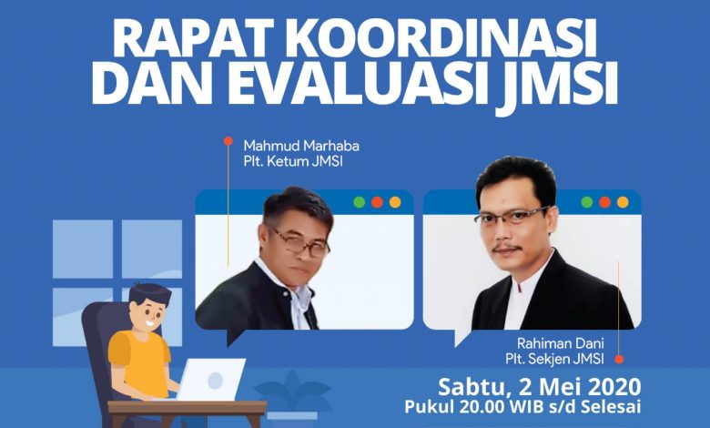 BeritaNasional.ID, Jakarta – Organisasi Perusahan Pers, Jaringan Media Siber Indonesia (JMSI) akan menggelar Rapat Koordinasi dan Evaluasi (Rakorev) pada Sabtu besok (02/05/2020). Rapat ini akan digelar secara daring menggunakan aplikasi Zoom Cloud Meetings dan melibatkan seluruh perwakilan JMSI provinsi.