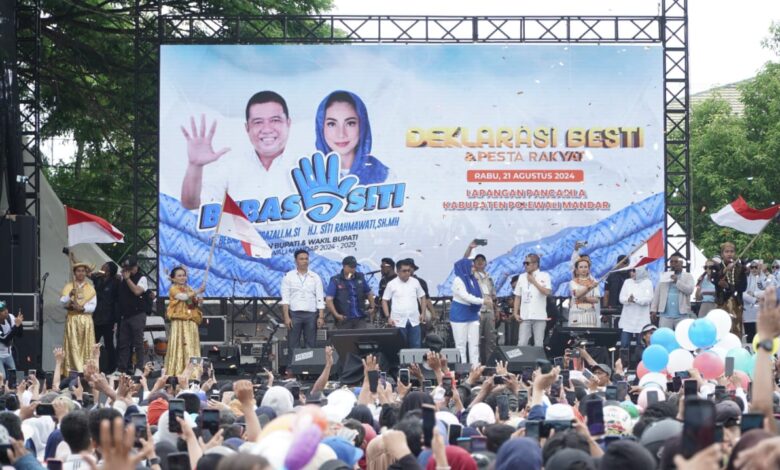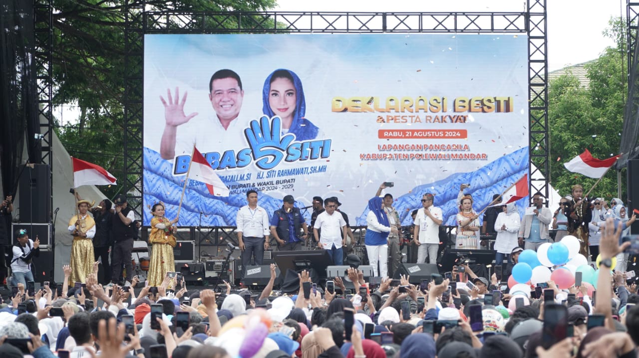 Kegiatan berlangsung di Lapangan Pancasila Pekkabat Kab Polman Sulbar dengan menghadirkan Artis Ibu Kota ,Nasar , Cici Paramida dan Ichal KDI menggoyang panggung Deklarasi yang dipaadati lautan manusia massa pendukung Bestie