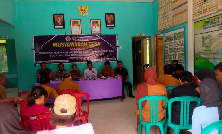 BeritaNasional.ID, SEKADAU KALBAR – Bhabinkamtibmas Polsek Belitang Hilir, Bripka Syarif, bersama Babinsa Sertu Mujianto turut hadir dalam Musyawarah Desa (Musdes) Penyusunan Rencana Kerja Pemerintah (RKP) Desa Sungai Ayak Satu untuk Tahun 2024 pada Senin (31/7/2023).