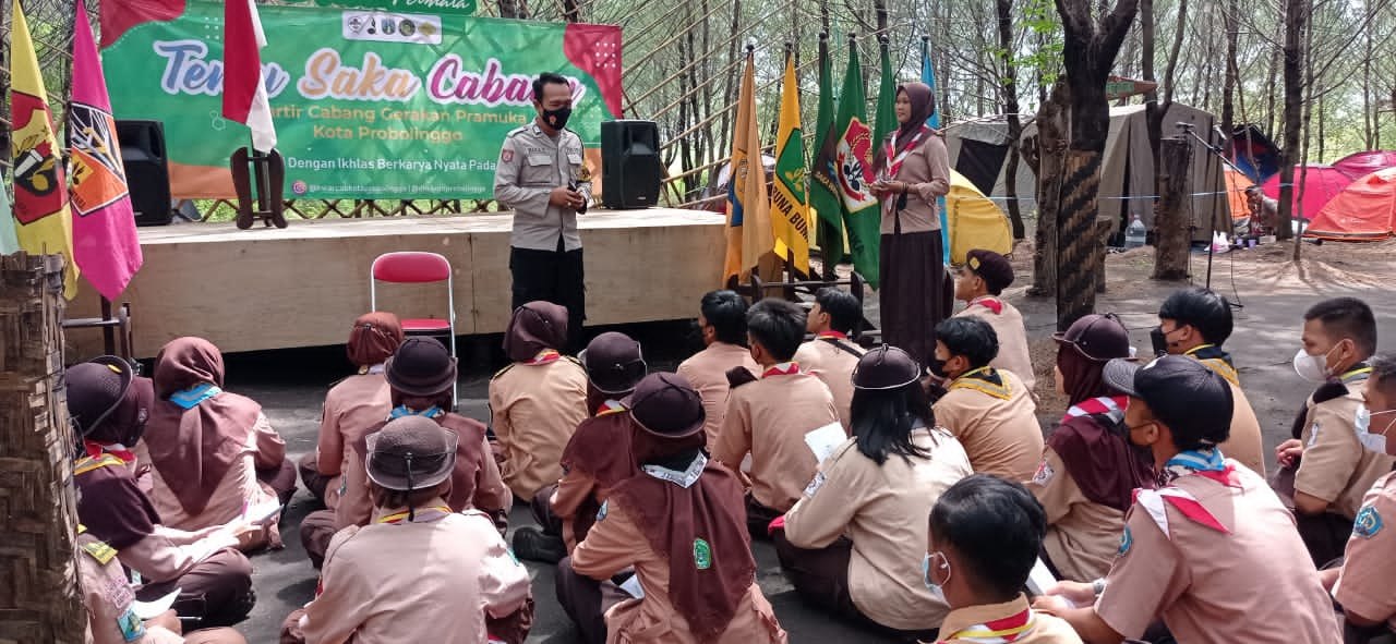 Hal tersebut dilakukan anggota Bhabinkamtibmas saat siswa Pramuka mengadakan kegiatan dengan tema temu saka cabang se kota Probolinggo.