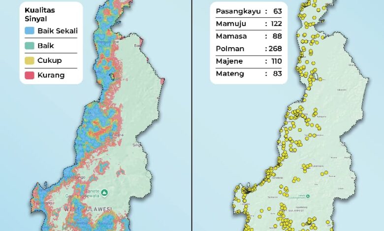 Berdasarkan Dashboard PMT Ditjen Infrastruktur Digital Kemenkomdigi RI per Februari 2026, masih terdapat 82 desa atau 12,65 persen wilayah Sulbar yang berada pada kondisi non coverage, terdiri atas 57 desa blankspot dan 25 desa dengan sinyal lemah.