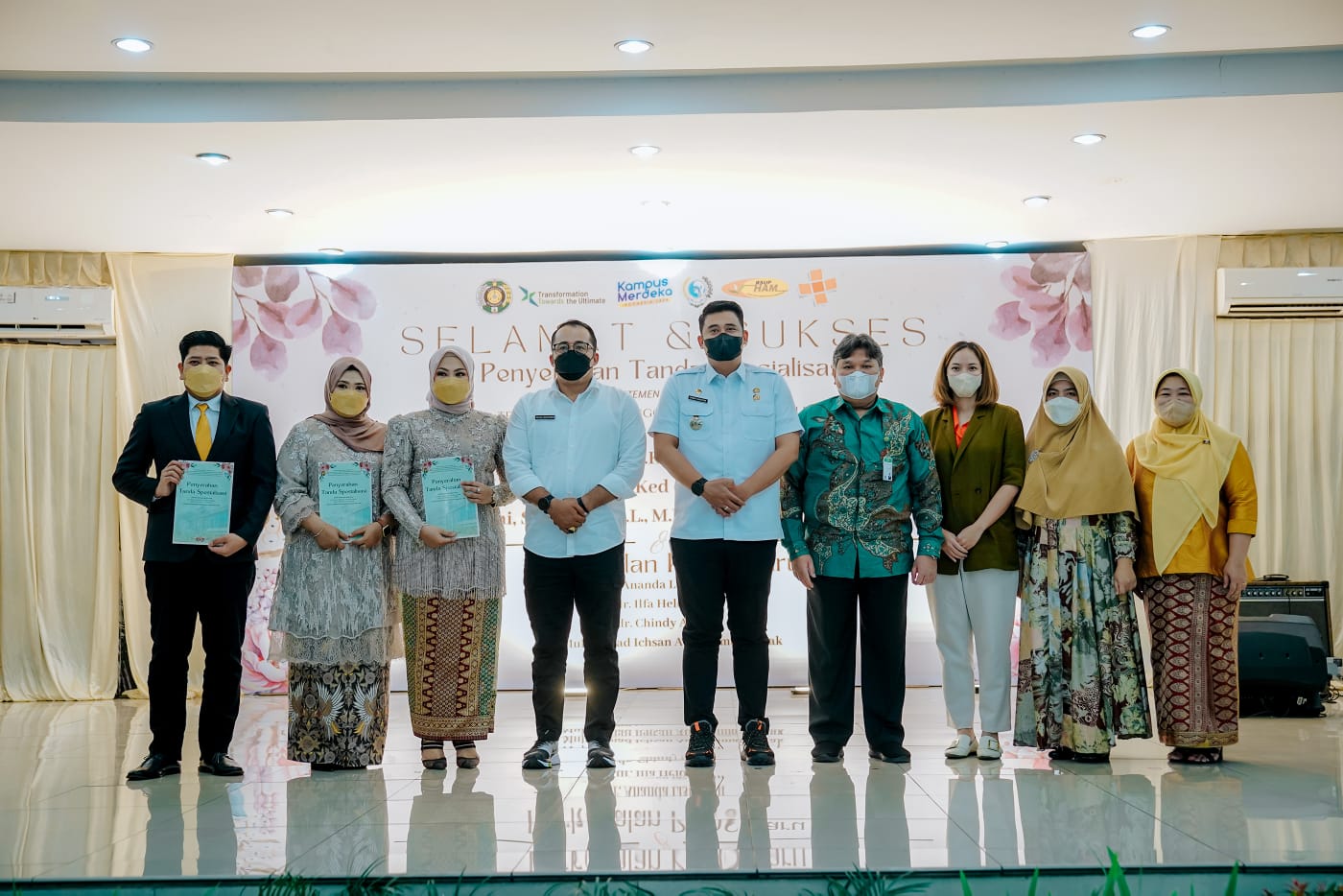 Bobby selanjutnya menyampaikan ucapan selamat kepada 3 dokter spesialis yang menerima tanda spesialisasi yakni dr Yulia Anggriani Sp THT BKL MKed, dr Diana Amellya Sp THT BKL MKed dan dr Muhammad Husni Sp THT BKL MKed.
