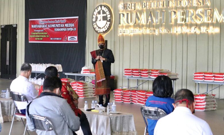 BeritaNasional.ID Medan – Wali Kota Medan, Bobby Nasution menyerahkan bantuan paket sembako kepada para wartawan dan pekerja pariwisata Medan, Jumat (10/9/2021) di GBI Rumah Persembahan, Jalan Jamin Ginting Medan. Bantuan ini merupakan donasi dari pihak PT Wilmar Group dan Yayasan Surya Kebenaran Internasional.