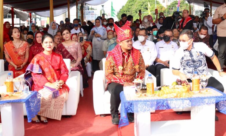 BeritaNasional.ID Medan,- Wali Kota Medan Bobby Nasution dan Ketua TP PKK, Kahiyang Ayu Bobby Nasution menari “Mbuah Page Ras Mejuah-juah” bersama masyarakat dan tokoh etnis Karo dalam perayaan Tahun Kerja Merdang Merdem Kuta Medan Tahun 2022, Rabu (29/6/2022) di Lapangan Istana Maimun.