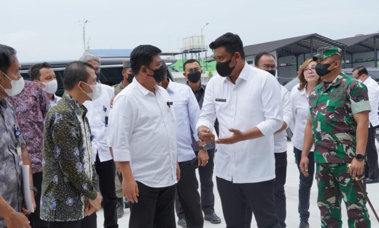 BeritaNasional.ID Medan,- Bersama Menteri Agraria dan Tata Ruang/Kepala Badan Pertanahan Nasional (ATR/BPN) Hadi Tjahjanto, Wali Kota Medan Bobby Nasution meninjau revitalisasi Terminal Tipe A Amplas di Jalan Panglima Denai, Kelurahan Timbang Deli, Kecamatan Medan Amplas, Selasa (12/7/2022) sore. Selain ingin melihat sejauh mana realisasi revitalisasi terminal modern di Kota Medan itu dilakukan, tujuan kunjungan dilakukan juga guna menindaklanjuti proses hibah lahan sehingga tidak ada lagi masalah terhadap lahan terminal tersebut.