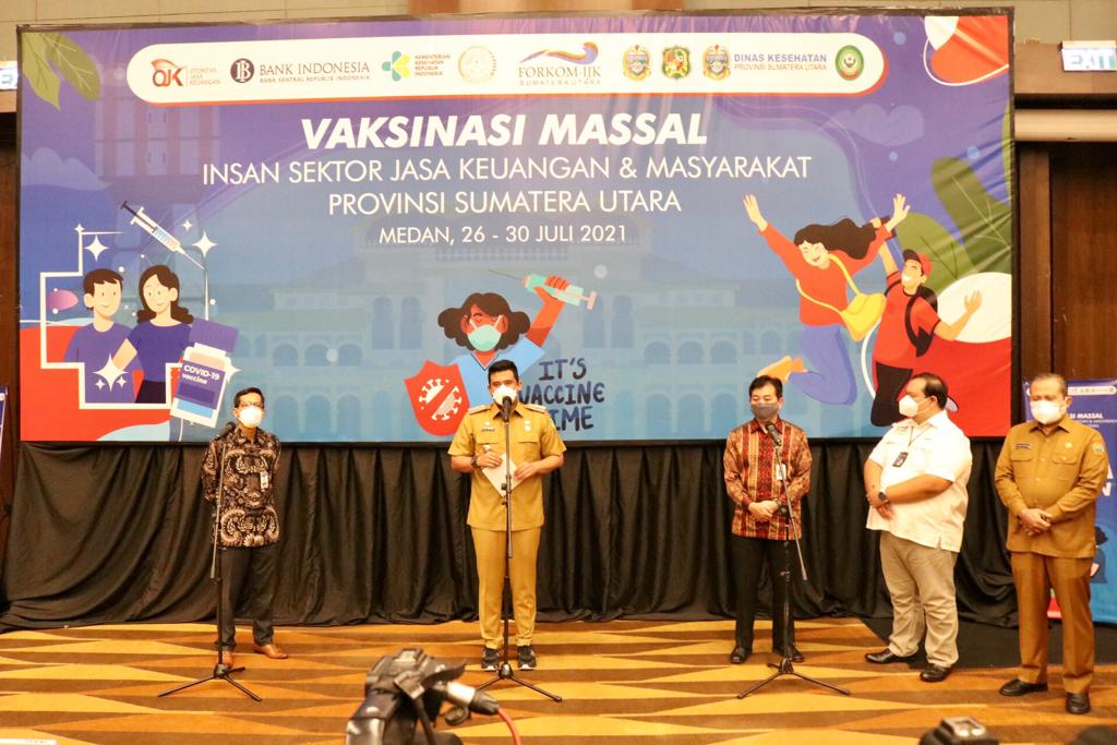 Bobby Nasution juga mengucapkan terima kasih kepada Otoritas Jasa Keuangan (OJK), Bank Indonesia (BI) dan seluruh penyelenggara yang telah berpartisipasi memutuskan mata rantai penyebaran Covid-19 di Medan melalui kegiatan vaksinasi massal ini.