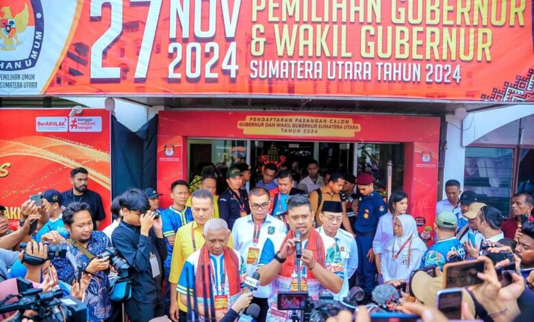 BeritaNasional.ID, MEDAN SUMUT – Pasangan bakal calon Gubernur dan Wakil Gubernur Bobby Nasution-Surya resmi mendaftar ke Komisi Pemilihan Umum (KPU) Sumut untuk maju pada Pilgub Sumut 2024, Rabu (28/8/2024).