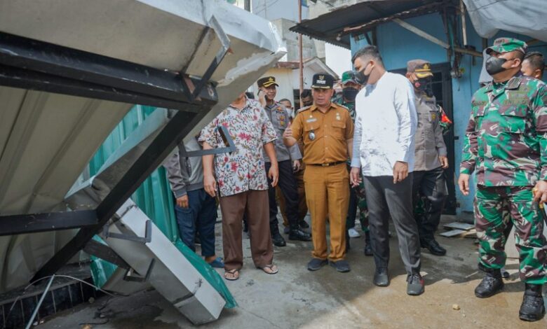 Bobby Nasution Tinjau Rumah Rusak Akibat Hujan Deras dan Angin Puting Beliung di Medan Sunggal