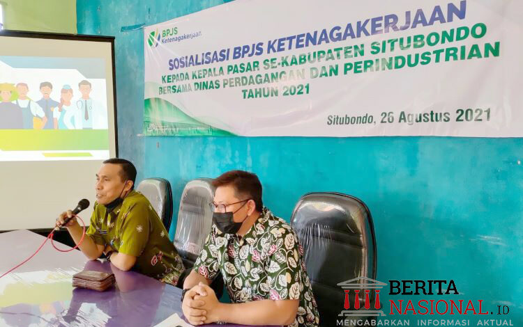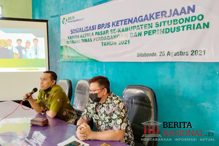 BeritaNasional.id – SITUBONDO JAWA TIMUR,-Kantor BPJS Ketenagakerjaan Situbondo gelar sosialisasi jaminan perlindungan ketenagakerjaan kepada kepala pasar Se Kabupaten Situbondo. Sosialisasi ini dihadiri langsung oleh Kepala Dinas Perdagangan dan Perindustrian Kabupaten Situbondo Abdul Kadir Jailani dan Bayu Wibowo Kepala BPJS Ketenagakerjaan Situbondo, Kamis (26/8/2021).