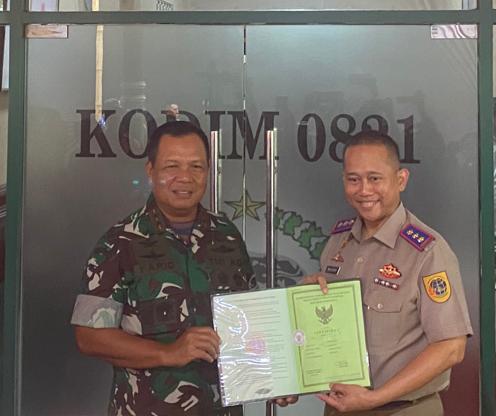 BeritaNasional.ID, LUMAJANG JATIM – Kepala Badan Pertanahan Kabupaten Lumajang HM Rocky Soenoko S.H., M.Si Serahkan Sertifikat Hak Pakai (SHP) an pemerintah Republik Indonesia cq kementrian pertahanan ke Pangdam V Brawijaya Mayjen TNI Farid Makruf M.A., saat kunjungan kerja di Kodim 0821 Lumajang Selasa (16/05/2023).