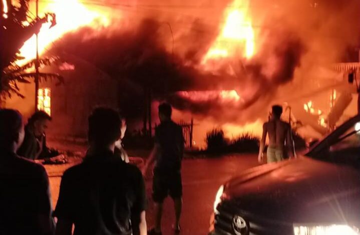 beritanasional.id l Aceh Utara – Sejumlah ruko dan rumah warga di Tambon Baroh, Kecamatan Dewantara, Aceh Utara dilalap si jago merah, Senin 8 Nopember 2021, malam.