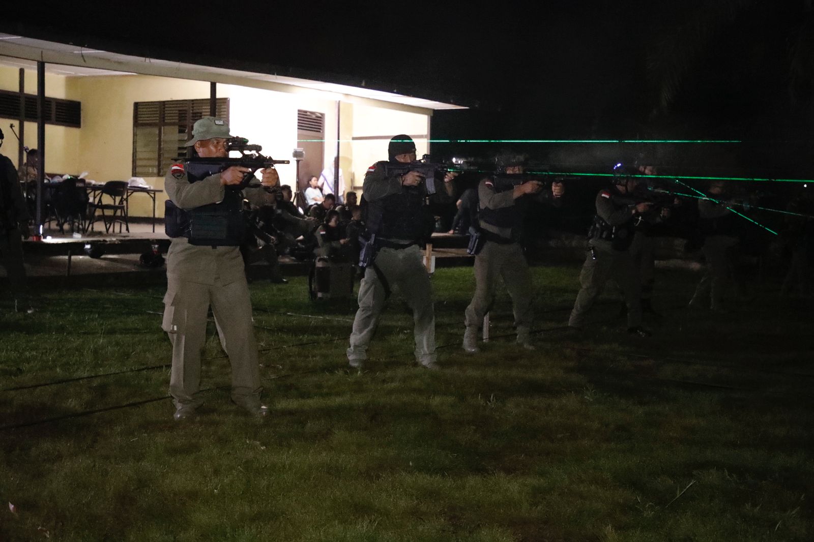 Brimob Kalbar Latihan Kemampuan Menembak Malam Hari