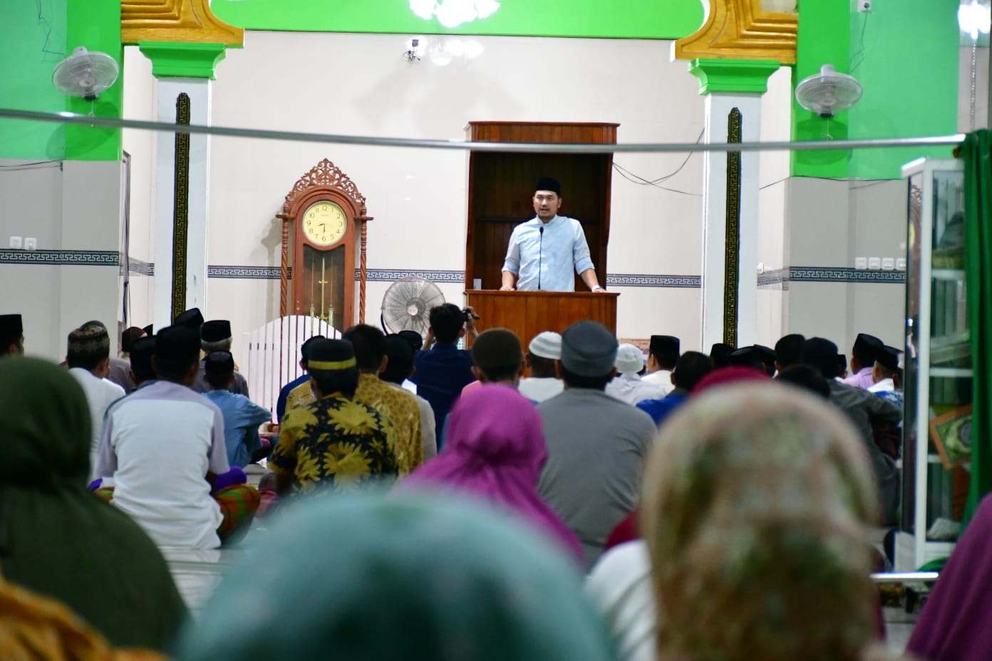 Sebelum melaksanakan salat tarawih secara berjamaah, Bupati ASA menyerahkan bantuan pribadi kepada pengurus Masjid. Sama dengan Ketua DPRD, Direktur PDAM dan Kepala Kemenag juga menyerahkan bantuan yang sama.