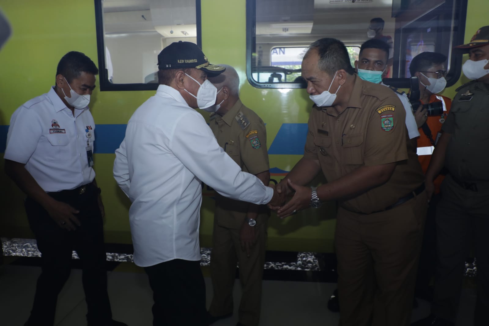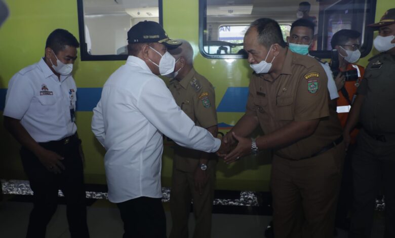 BeritaNasional.Id – Kisaran, Sumatera Utara – Bupati Asahan H. Surya BSc bersama Wakil Bupati Taufik Zainal Abidin Siregar, S.Sos, MSi dan Forkopimda Asahan lainnya menyambut kedatangan Gubernur Sumatera Utara Edy Rahmayadi dan rombongan di Stasiun Kereta Api Kisaran, Senin (25/04/2022).