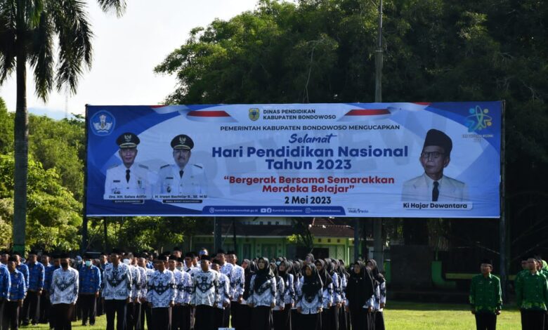 Berita Nasional.ID, Bondowoso Jawa Timur – Upacara Hari Pendidikan Nasional (Hardiknas) 2023 diselenggarakan di Alun – Alun RBA Kironggo Bondowoso. Dengan tema ‘Bergerak Bersama Semarakkan Merdeka Belajar’, Selasa (2/5).