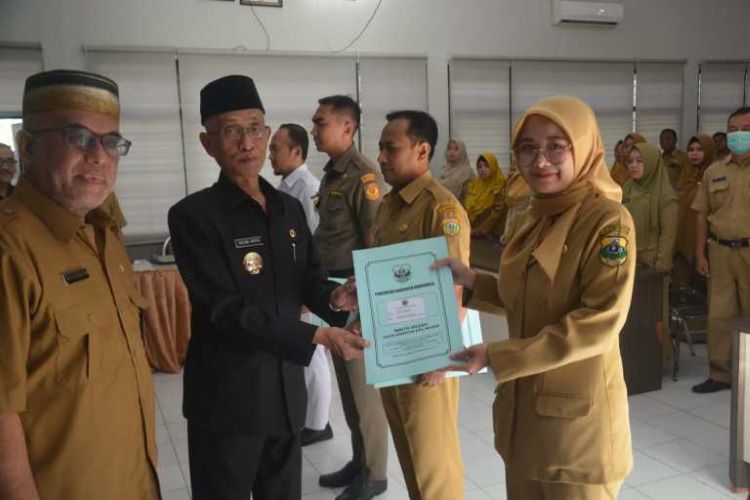 BONDOWOSO JAWA TIMUR-BeritaNasional.id, Bupati Bondowoso Drs. KH. Salwa Arifin menyerahkan Surat Keputusan (SK) pengangkatan 284 Calon Pegawai Negeri Sipil (CPNS) yang telah menjadi PNS pada Formasi tahun 2019 lalu, Selasa (14/2/2023).
