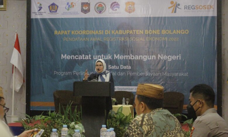 Hal ini disampaikan Bupati Bone Bolango Hamim Pou dalam sambutannya secara tertulis yang dibacakan oleh Wakil Bupati Bone Bolango Merlan S. Uloli saat membuka kegiatan Rapat Koordinasi (Rakor) Registrasi Sosial Ekonomi (Regsosek) tahun 2022 tingkat Kabupaten Bone Bolango yang berlangsung di Ballroom Grand Q Hotel Kota Gorontalo, Selasa (20/9).