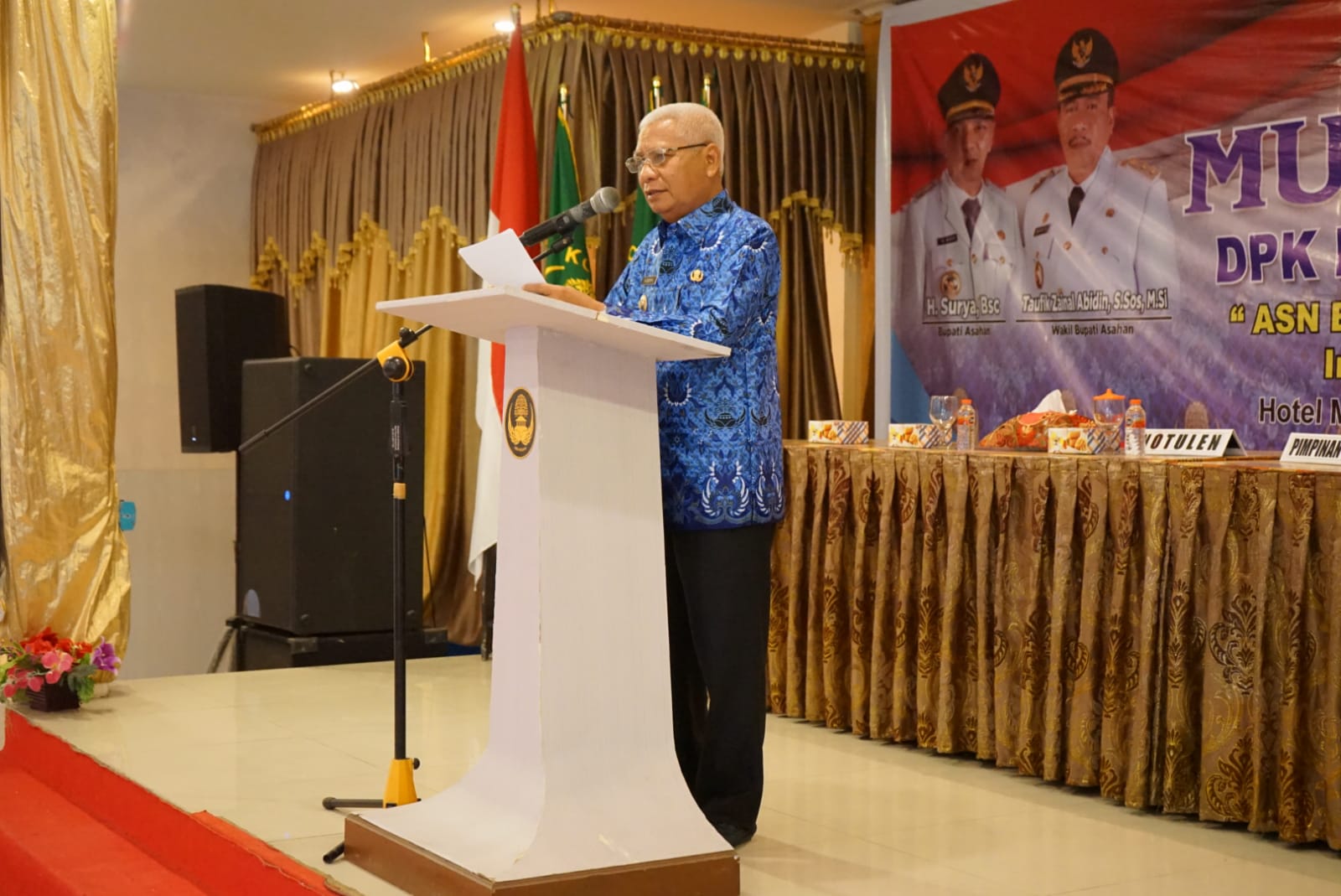 Hal itu disampaikan Bupati Asahan H. Surya BSc dalam sambutannya ketika membuka secara resmi Musyawarah Kabupaten (Muskab) DPK Korpri Asahan ke – VI di aula Hotel Marina Kisaran, Kamis (17/03/2022).