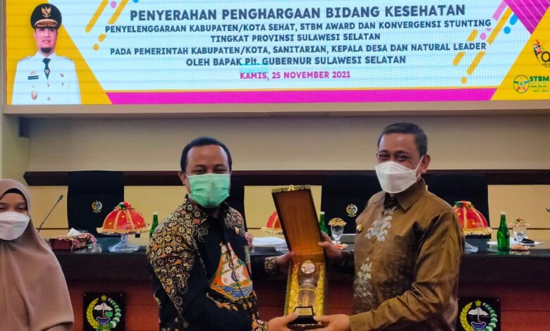 Selanjutnya, piagam penghargaan atas penyelenggaraan kabupaten/kota sehat atau Swasti Saba Kategori Wistara 2019–2020 dari Plt Gubernur Sulsel.