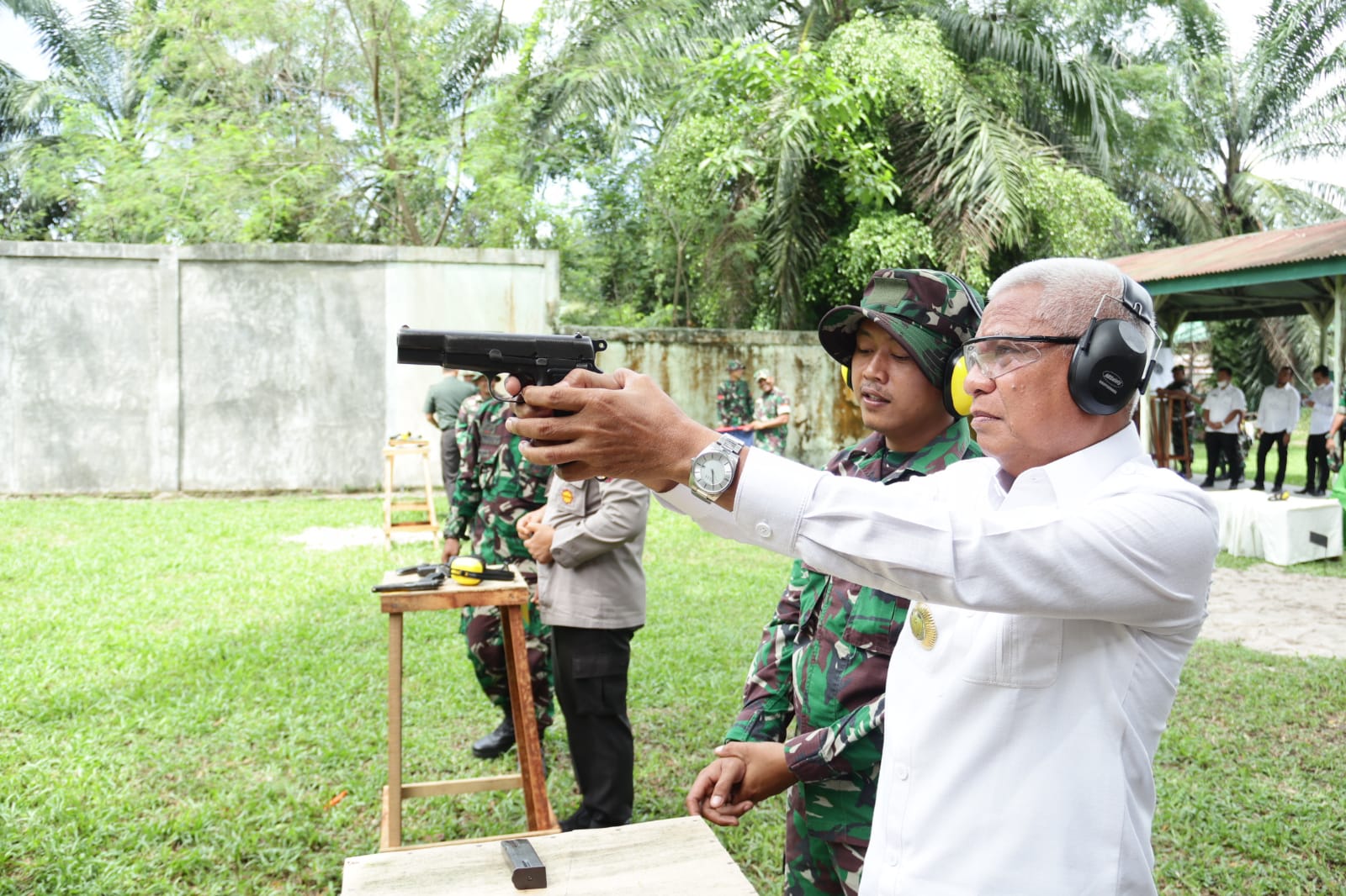 BeritaNasional.Id – Kisaran, Sumatera Utara – Bupati Asahan H. Surya BSc bersama Wakil Bupati Taufik Zainal Abidin S.Sos, MSi mengikuti kegiatan perlombaan tembak meriah yang diselenggarakan Kodim 0208 Asahan di lapangan tembak Makodim setempat, Rabu (27/07/2022).