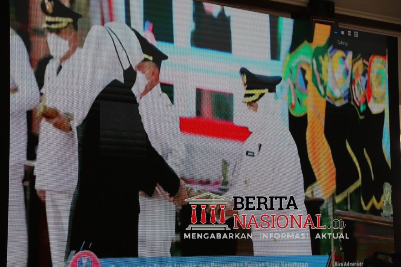 Prosesi pelantikan dan pengambilan sumpah Bupati dan Wakil Bupati tersebut menggunakan protokol Kesehatan COVID-19 secara ketat diawasi oleh Tim Kementrian Dalam Negeri.