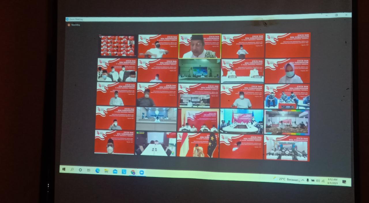 Zikir dan Doa bersama yang diikuti seluruh Kepala Daerah se Indonesia tersebut mengangkat tema “Bersyukur atas kemerdekaan, berdoa dan berikhtiar untuk mewujudkan indonesia maju”.