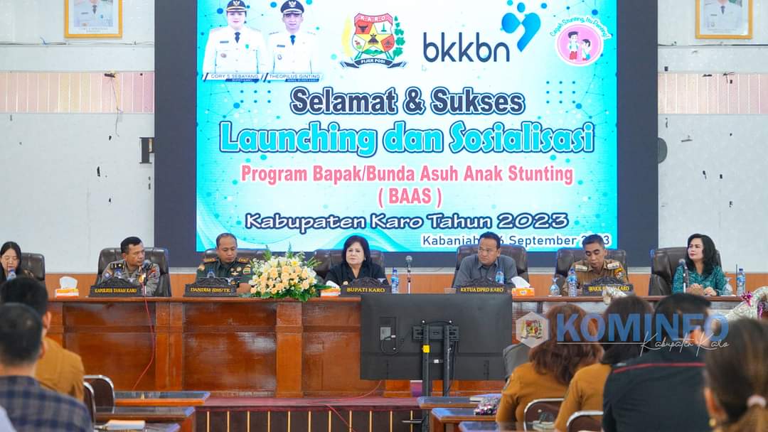 BeritaNasional.ID, KABANJAHE SUMUT – Bupati Karo, Cory Sriwaty Sebayang Launching Program Bapak/Bunda Asuh Anak Stunting (BAAS) Kabupaten Karo Tahun 2023 di Aula Kantor Bupati Karo, Selasa (26/9/2023).