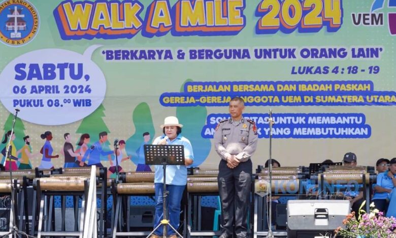 BeritaNasional.ID, KABANJAHE SUMUT – Bupati Karo Cory Sriwaty Sebayang hadiri rangkaian acara Walk A Mile dan Paskah United Evangelical Mission (UEM) 2024 yang dilaksanakan di Halaman GBKP Rg. Kabanjahe Kota, Sabtu (5/4/2024).