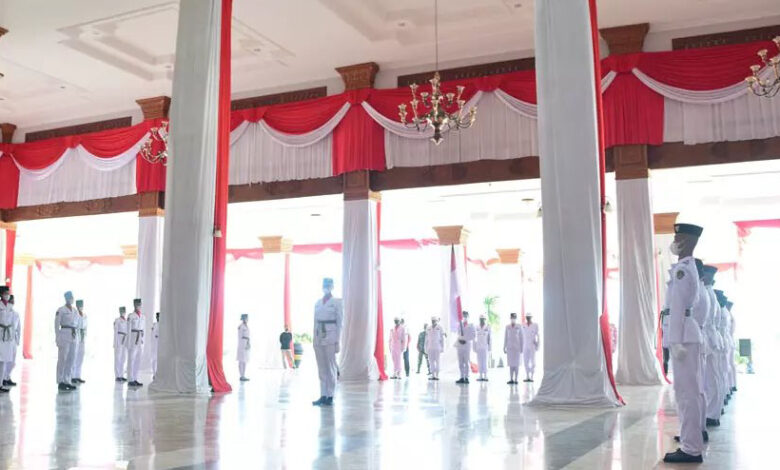 BeritaNasional.ID, Madiun – Bupati Madiun H. Ahmad Dawami mengukuhkan 34 Pasukan Pengibar Bendera Pusaka (Paskibraka) Kabupaten Madiun di Pendopo Ronggo Djumeno, Minggu (15/8/2021).