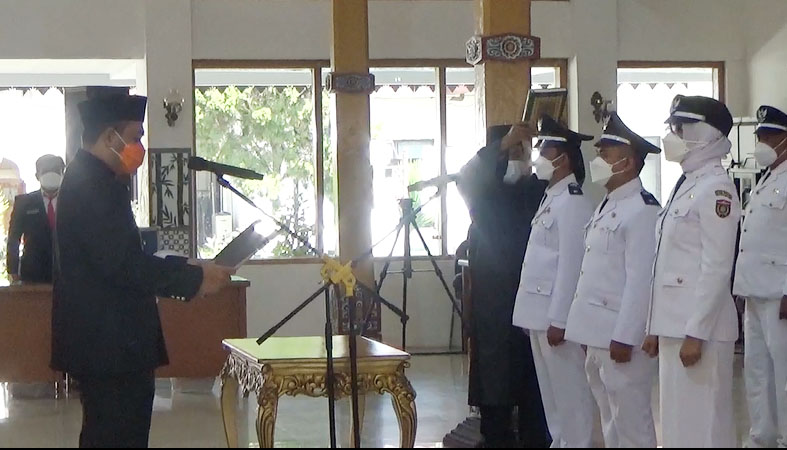 Pengambilan sumpah dilaksanakan oleh Bupati Ngawi, kemudian dilanjutkan penyematan lencana secara simbolis kepada satu perwakilan Kades diikuti yang lainnya. Kesepuluh Kepala Desa terlantik yaitu terdiri dari Kepala Desa Kletekan Yasin Nurhadi (Kecamatan Jogorogo), Kepala Desa Brubuh Muhtarom (Kecamatan Jogorogo), Kepala Desa Kwadungan Lor Sutriono (Kecamatan Padas), Kepala Desa Mangunharjo Suprapto (Kecamatan Ngawi), Kepala Desa Krompol Ibnu Muharram (Kecamatan Bringin), Kepala Desa Sidorejo Danang Pamungkas (Kecamatan Kendal), Kepala Desa Budug Amirul Yati (Kecamatan Kwadungan), Kepala Desa Sidokerto Johandi (Kecamatan Karangjati), Kepala Desa Banyu Urip Dwipo Cahyono (Kecamatan Ngawi), Kepala Desa Watualang Anton Ponijan (Kecamatan Ngawi).