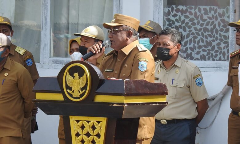 Tak hanya ASN, kepala Desa, Lurah, kepala kampung, perangkat Desa, anggota BPD dan perangkat masjid juga menjadi sasaran Bupati saat apel digelar.