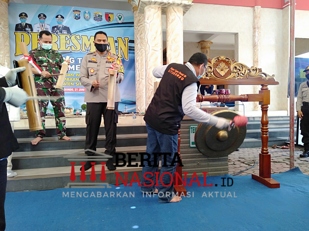 BeritaNasional.ID, SITUBONDO – Bupati Situbondo, H. Dadang Wigiarto SH bersama Wakil Bupati Ir. H Yoyok Mulyadi SE, Dandim 0823 Letkol Inf Akhmad Juni Toa, SE, M.I.Pol, Kajari Nur Slamet, S.H. MH, dan Kapolres Situbondo AKBP Sugandi S.I.K M.Hum meresmikan Kampung Tangguh Semeru di Perumahan Panji Permai, Kelurahan Mimbaan, Kecamatan Kota, Kabupaten Situbondo, untuk memutus mata rantai penularan Virus Corona atau Covid- 19, Minggu, (21/6/2020).