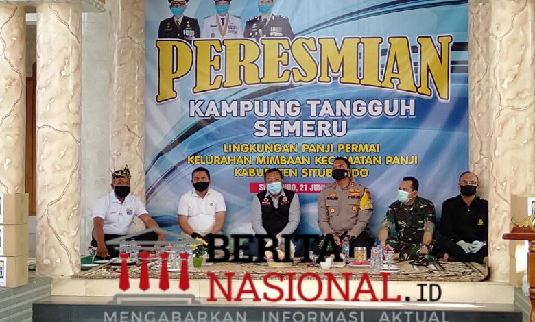 Selanjutnya, Bupati Dadang menandai peresmian kampung tangguh Semeru di Perumahan Panji Permai dengan memukul gong didampingi Wakil Bupati, Kapolres Situbondo, Dandim 0823, dan Kajari Situbondo.