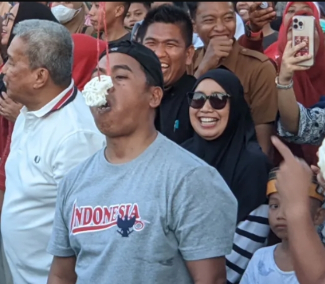 Lebih penuh gelak tawa lagi ketika saat lomba makan kerupuk, di mana Bupati turut ambil bagian bersama jajaran Forkopimda dan para kepala OPD. Aksi rebutan kerupuk di udara itu membuat penonton tak bisa menahan tawa antusias.