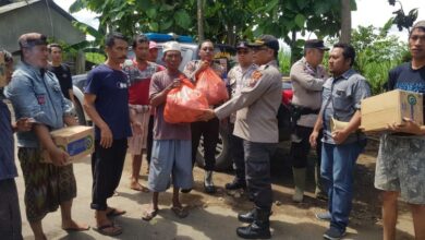 Kapolsek Kendit Iptu Suryanto saat menyerahkan bantuan makanan dan air mineral (As'ad Zuhadi Anwar/BeritaNasional.id) Pasca Banjir, Kapolsek Kendit Droping Bantuan Makanand dan Minuman Untuk Warga