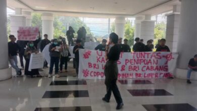 Aliansi Mahasiswa Dan Masyarakat Polman saat aksi di gedung DPRD Polman pertabyakan BRI Life (foto wn/un) BRI Life Rugikan Masyarakat, AMM Gelar Aksi Di DPRD Polman