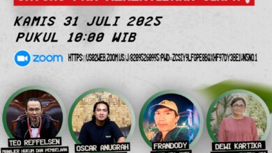 Poster Konferensi Pers “Aliansi Petani Jambi Menggugat: Menelisik Perpres No.5 Tahun 2025 – Satgas PKH Menertibkan Siapa?” yang diselenggarakan pada Kamis, 31 Juli 2025 pukul 10.00 WIB secara daring melalui Zoom. Aliansi Petani Jambi Gugat Perpres Penertiban Kawasan Hutan: “Petani Butuh Pupuk, Bukan Intimidasi”
