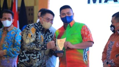 Bupati Labura Hendriyanto Sitorus saat menerima penghargaan kategori Mitra Kerja Terbaik dari Media Sumut24 (Foto: Berita nasional.ID) Hendriyanto Sitorus Raih Penghargaan Mitra Kerja Terbaik