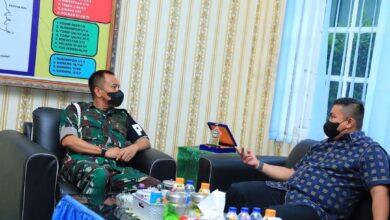 Bupati Labura Hendriyanto Sitorus saat berbincang dengan Komandan Denpom I/1 Pematang Siantar Mayor CPM Junilham Sitorus SE (Foto : Berita nasional.ID) Ini Tujuan Bupati Labura Bertemu Komandan Denpom I/1 Pematang Siantar