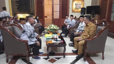 Ketua PGRI Dr. Drs. H. Sugiono Eksantoso, SH, MM bersama Pengurus saat melakukan koordinasi dengan Bupati KH. Abd. Hamid Wahid, M.Ag di Pendopo (Syamsul Arifin/BeritaNasional.ID) Ditunjuknya Taufan Restuanto Menjadi Kadisdik Mendapat Apresiasi dari PGRI
