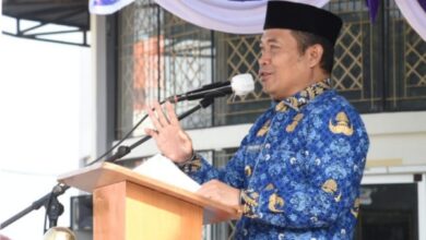 Penjabat Gubernur Gorontalo Ismail Pakaya saat memimpin apel perdana pasca lebaran Idulfitri dirangkaikan dengan Apel Korpri dan Halalbihalal, Selasa, (16/4/2024) di halaman Museum Purbakala. Foto – Haris Disetujui KASN, Pengisian Jabatan di Pemprov Gorontalo Kini Gunakan MT