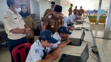 Wali Kota Tanjungbalai H Waris Tholib didampingi Pelaksana tugas (Plt) Kepala Dinas Pendidikan dan Kebudayaan Hj Delima monitoring pelaksanaan UNBK(Foto/ Amin Sinaga Bernas) Pelaksanaan ANBK Tingkat SMP Sederajat di Kota Tanjungbalai Dipantau Walikota