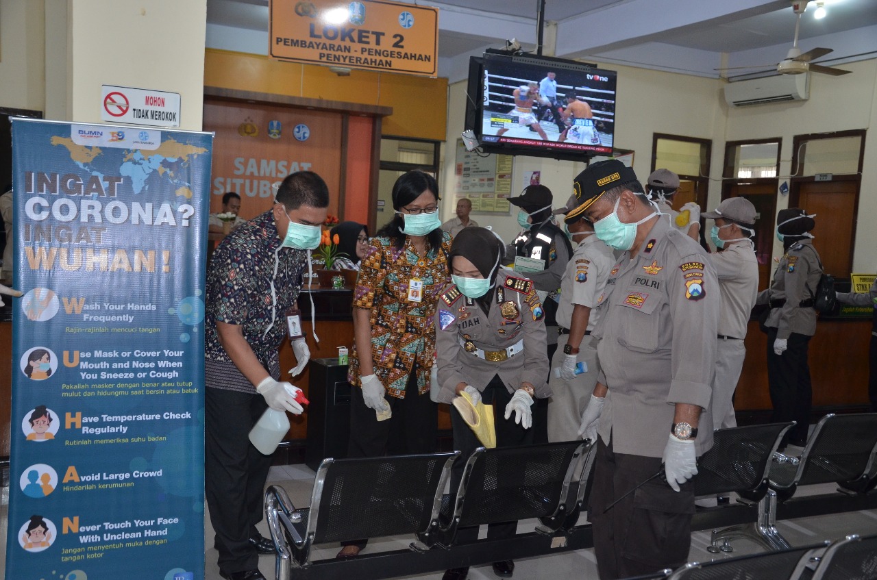 Cegah Virus Corona, Polres Situbondo Sterilkan Ruang Publik