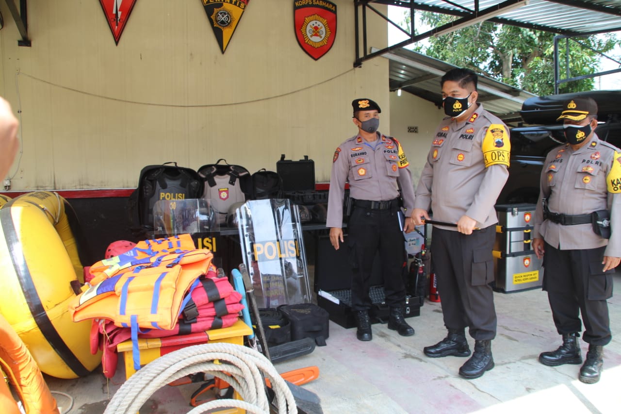 BeritaNasional.ID, Tegal – Kepala Kepolisian Resor Tegal AKBP M. Iqbal Simatupang didampingi Kabag Ops Kompol Aries Heriyanto dan Kasat Sabhara Iptu Surahno mengecek secara langsung sarana prasarana peralatan Search and Rescue (SAR) milik Polres Tegal, Senin (9/11/2020).