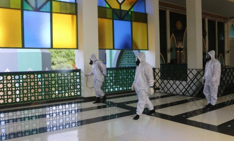 “Meski di masjid suada ini sudah ada himbauan tertulis dan juga setiap hari dihimbau oleh takmir masjid untuk para jemaah agar dalam pelaksanaan ibadah selalu menerapkan protokol kesehatan, namun kita juga menambahkan dengan menyemprotkan disinfektan, karena ini juga salah satu cara untuk membunuh bibit bibit virus secara umum, termasuk virus covid-19” tambah Kompol Daud
