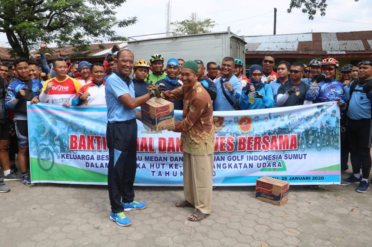 “Terimakasih atas kunjungan dan bantuan dari bapak TNI, Danlanud Soewondo, Kolonel Pnb Meka Yudanto, Pangkosek Hanudnas III yang diwakili oleh Asintel dan Danwing III Paskhas, Kolonel Pas Novlah Mirsah dan bapak Ikhsan Batubara selaku ketua persatuan Golf Indonesia provinsi Sumatera Utara atas bantuannya, semoga apa yang bapak lakukan mendapat balasan pahala dari Allah SWT,”ucap ustadz Rozak.