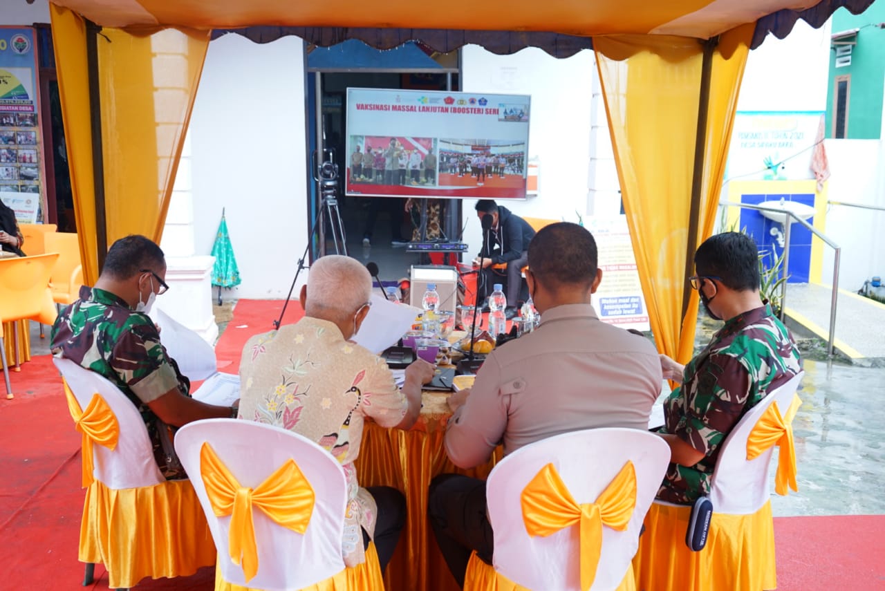 Usai mengikuti zoom meeting, Bupati bersama Kapolres Asahan AKBP Putu Yudha Prawira SIK, MH, Danlanal TBA Letkol Laut (P) Aan Prana Tuah Sebayang SE, dan perwakilan Dandim 0208/AS melakukan peninjauan pelaksanaan vaksinasi kepada kelompok usia Rentan (lansia) di Desa Sipaku Area.