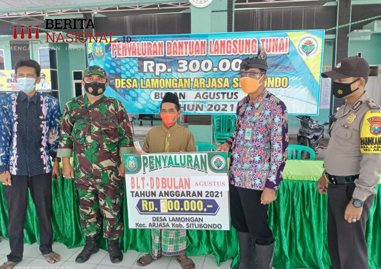 BeritaNasional.ID – SITUBONDO JAWA TIMUR,- Anggota koramil 0823/10 Arjasa bersama Polsek Arjasa melakukan pendampingan penyaluran Bantuan Langsung Tunai Dana Desa (BLT-DD) yang berlangsung di kantor Desa Lamongan, Kecamatan Arjasa, Kabupaten Situbondo, Jumat (13/8/2021).