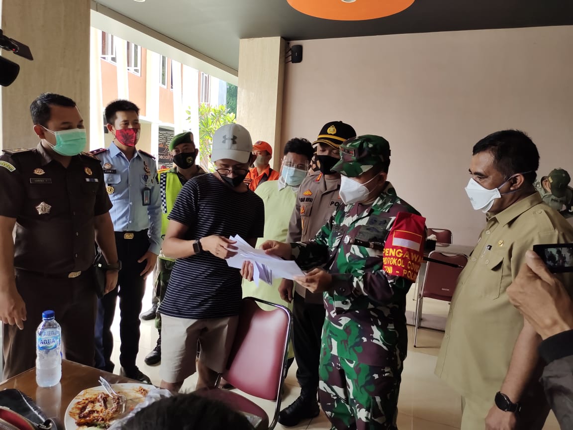 Operasi Penegakan Disiplin Protokol Kesehatan COVID-19 yang berlangsung di Res Area Hotel Utama Raya, Kecamatan Banyuglugur, Kabupaten Situbondo tersebut, di pimpin oleh Dandim 0823/Situbondo Letkol Inf Neggy Kuntagina S.I.P didampingi Kapolres Situbondo AKBP Achmad Imam Rifai SH, S.I.K. “Hari ini saya bersama Kapolres Situbondo dan instansi lainnya mengecek Pos Point yang ada di wilayah Kecamatan Banyuglugur, perbatasan Kabupaten Situbondo dan Probolinggo,” kata Dandim Neggy.