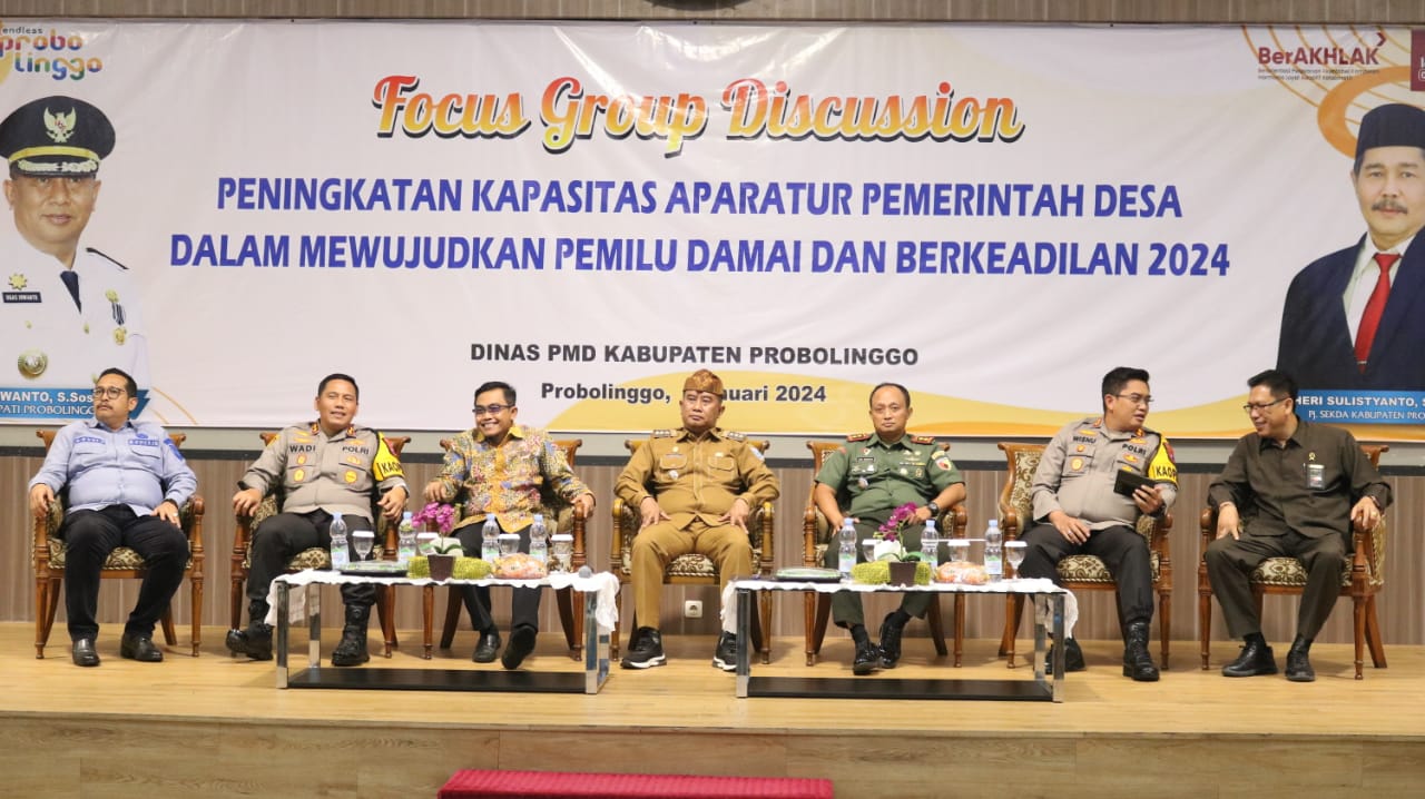BeritaNasional.ID, PROBOLINGGO JATIM -Komandan Kodim (Dandim) 0820/Probolinggo Letkol Arm Heri Budiasto ikut ambil bagian dalam gelaran Fokus Group Discussion (FGD) peningkatan kapasitas aparatur pemerintah desa dalam mewujudkan Pemilu damai dan berkeadilan tahun 2024 yang diprakarsai Dinas Pemberdayaan Masyarakat dan Desa (DPMD) Kabupaten Probolinggo.